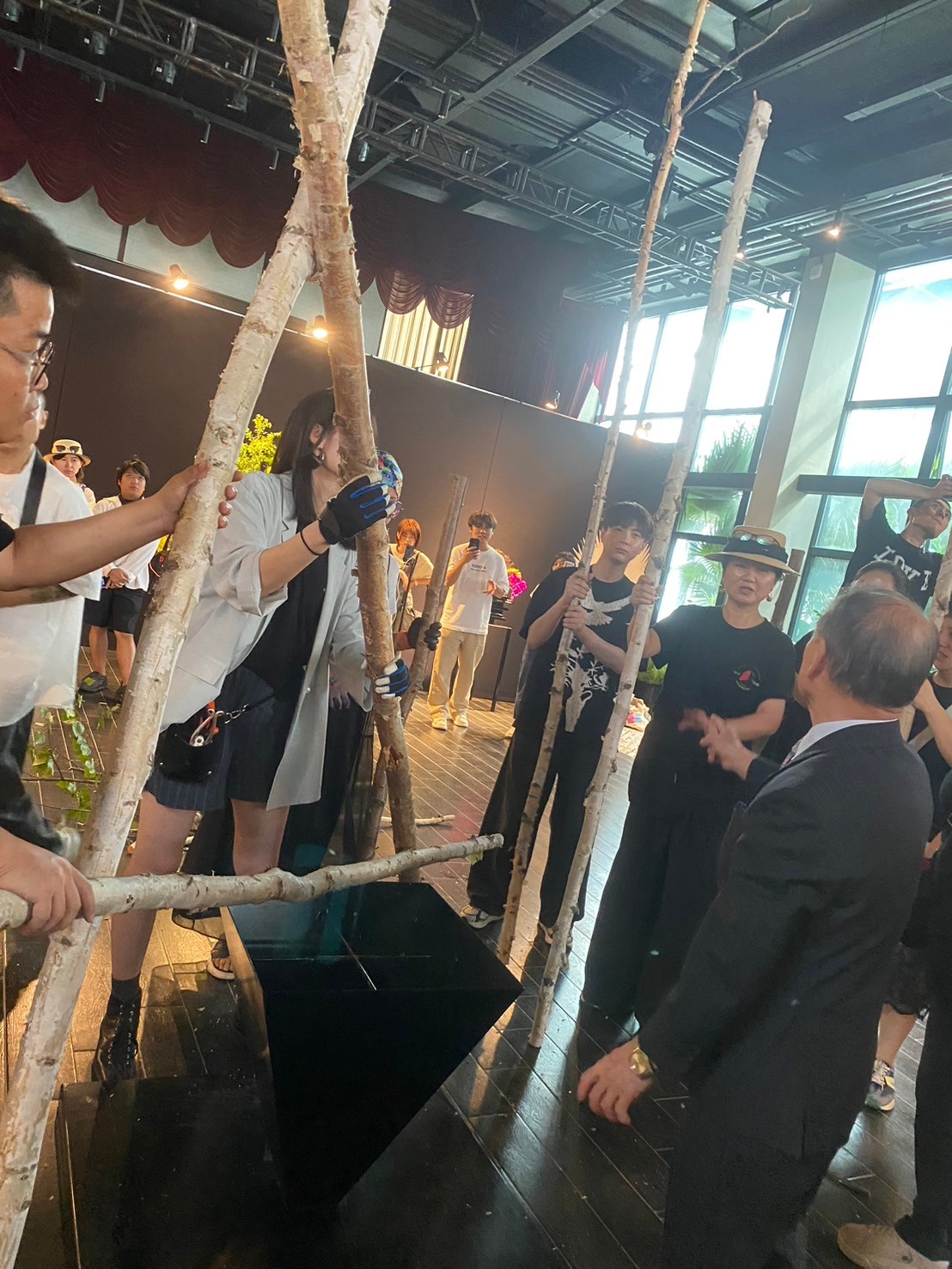 草月会員の合作制作指導。